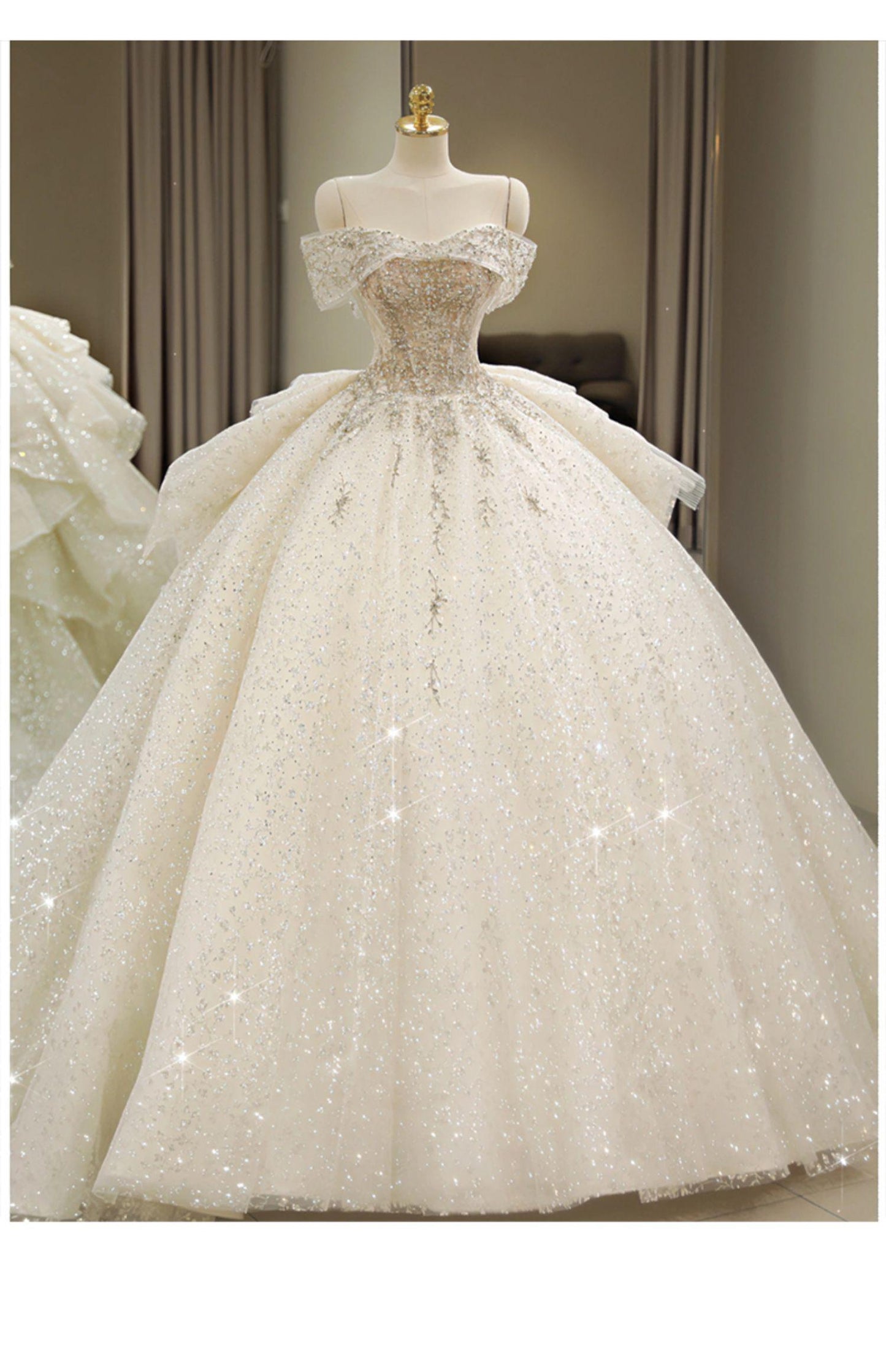 Off The Shoulder Lace Up Bridal Ball Gown Large Train Plus Size Made Custom