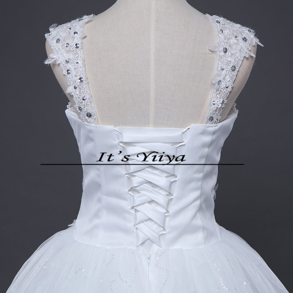 Free Shipping Wedding Dress 2016 White Princess Wedding Frock Sequins Handmake Lace up Vestidos De Novia for Bride Ball Gown H62