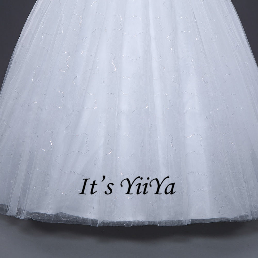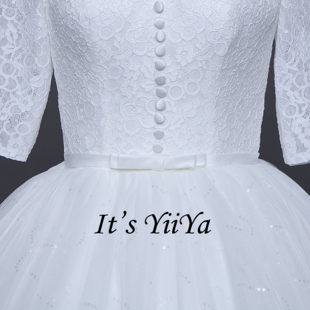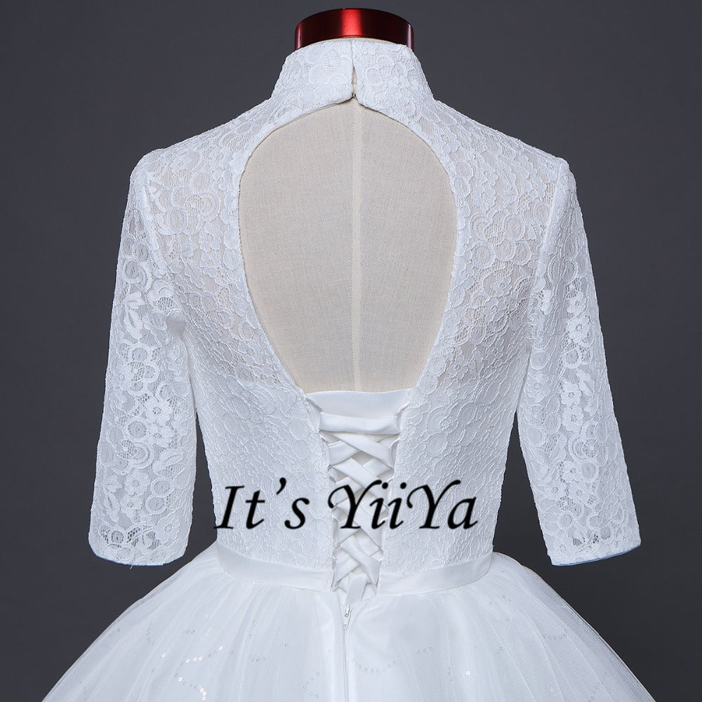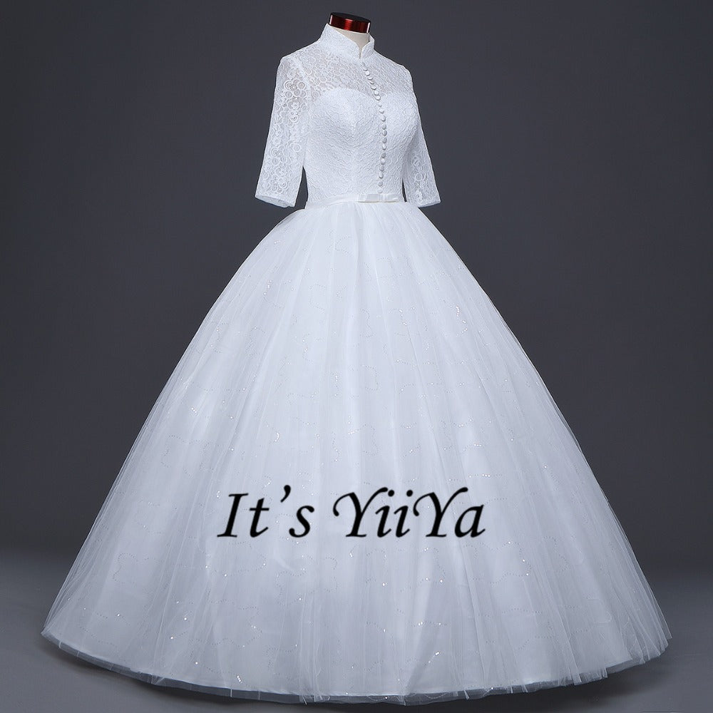 Free shipping White Wedding Ball Gowns High neck Three Quarter Sleeves Princess Vestidos De Novia Lovely Frock Bride Dress IY001