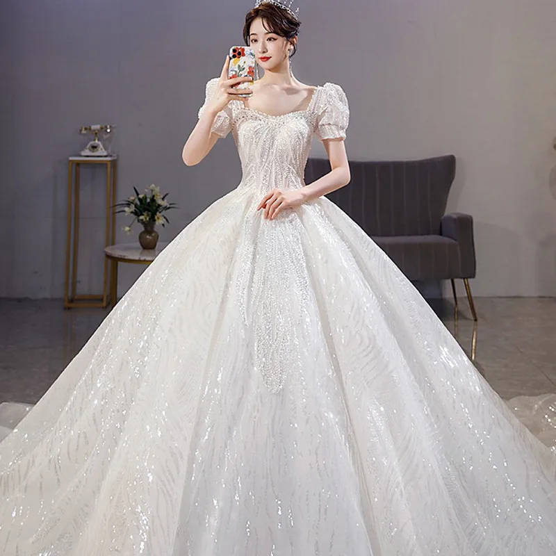 High End Bling Bling Women Sequins Short Sleeves Ball Gown