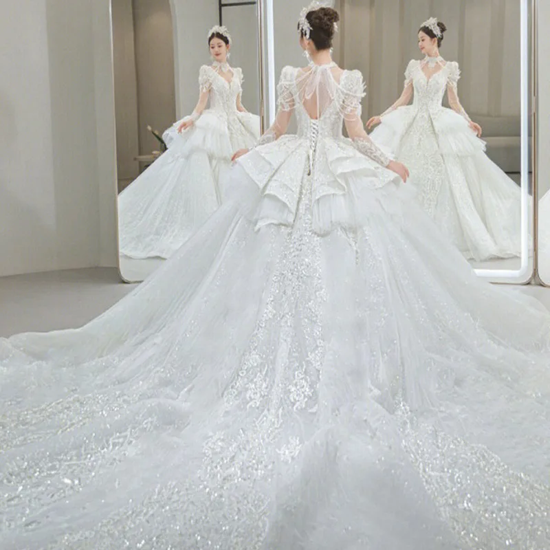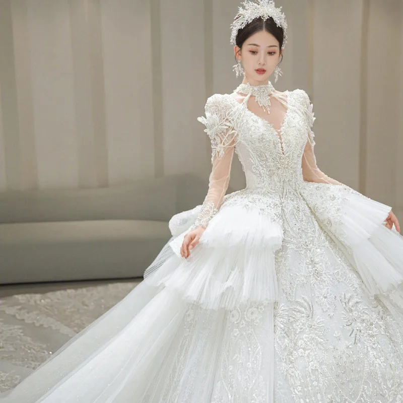 High End White Appliques Beads Bridal Ball Gown