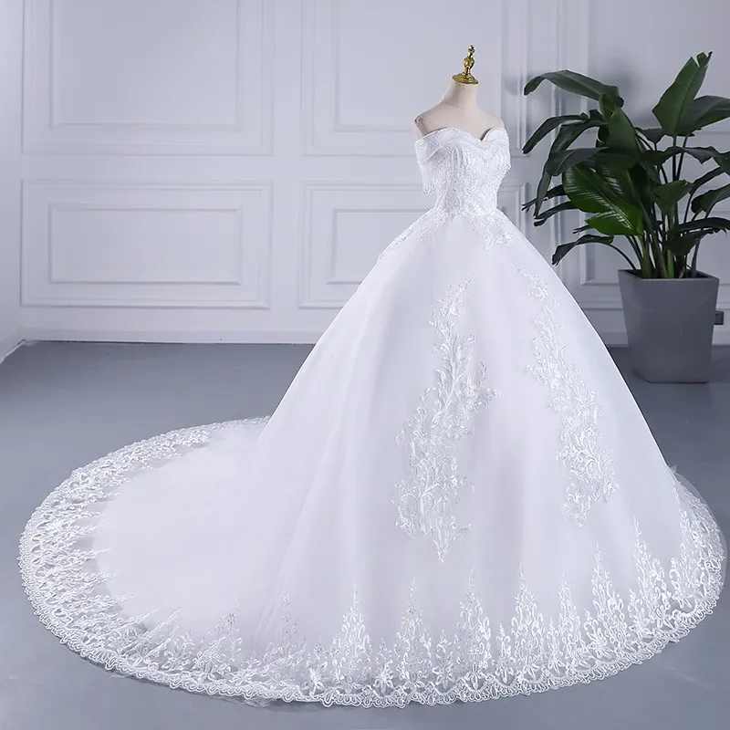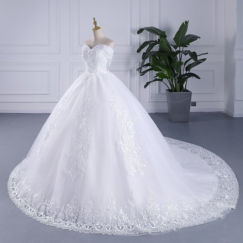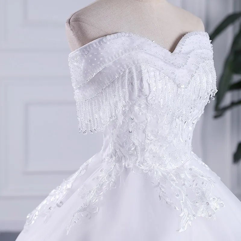 Lace Crystal Beaded Wedding Dresses New Plus Size Off The Shoulder Wedding Gown