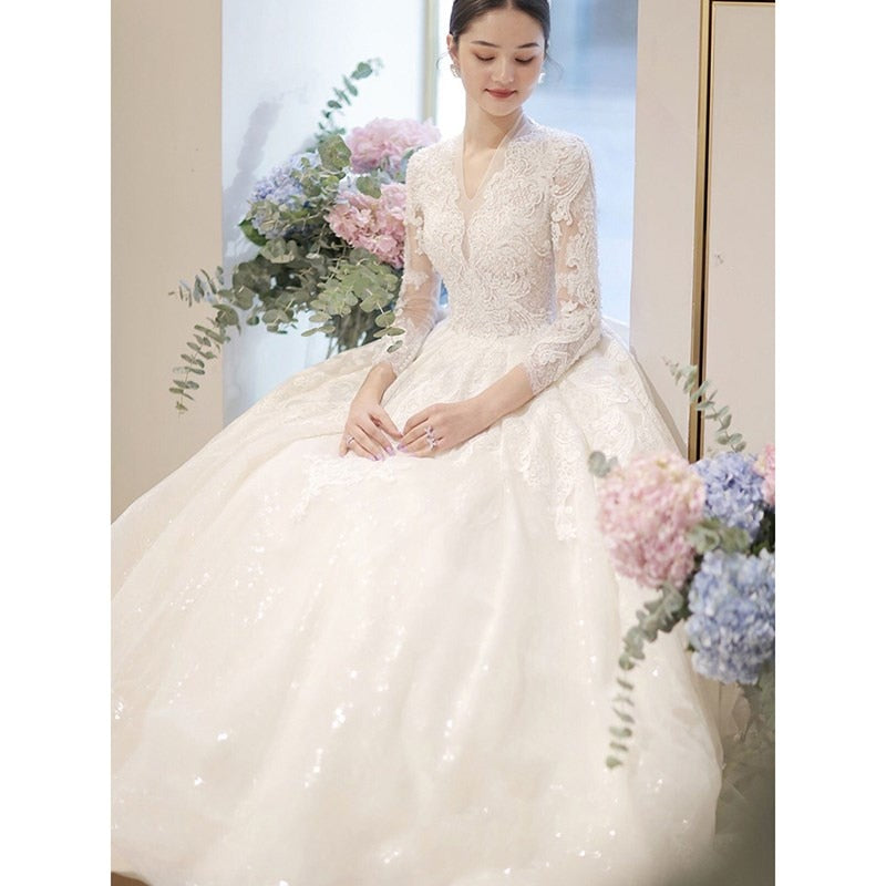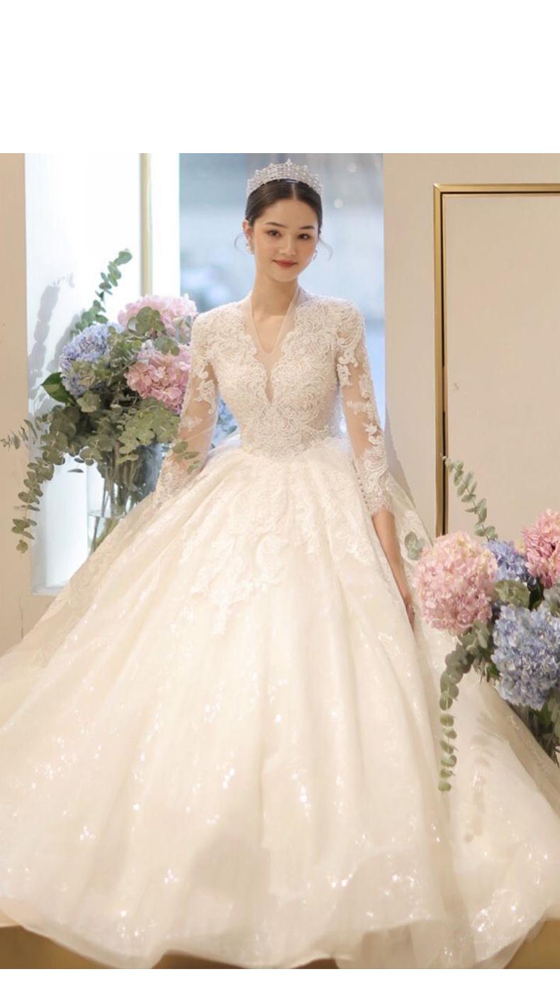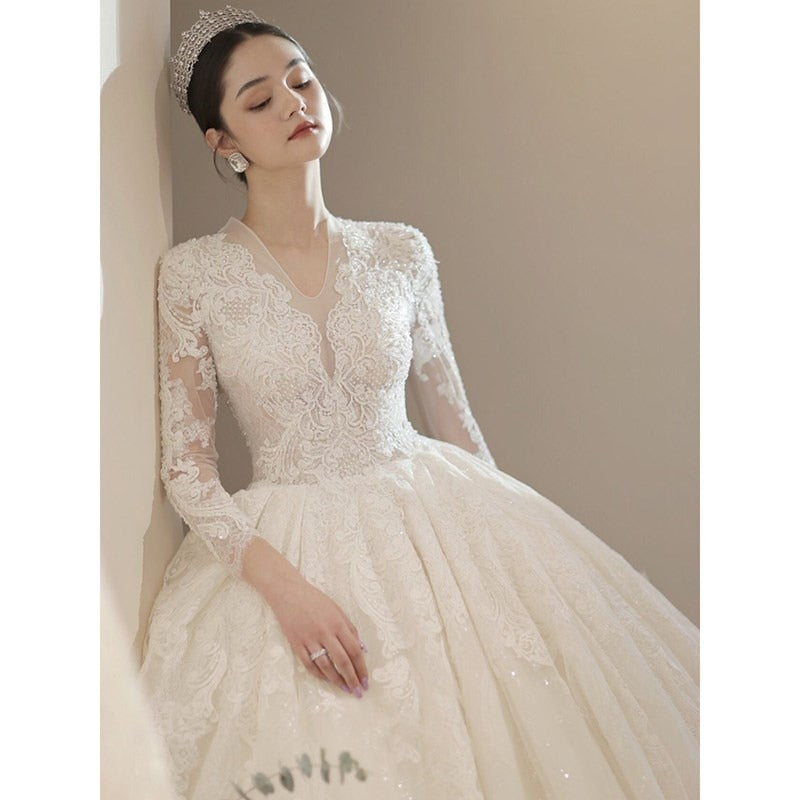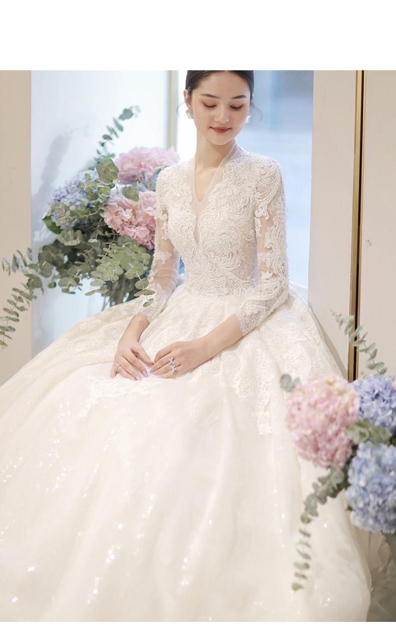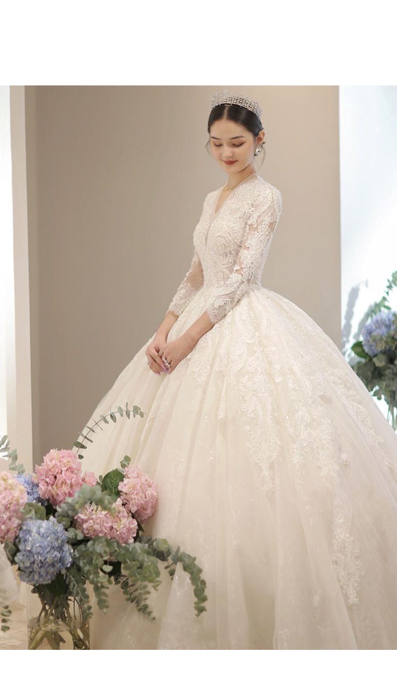 Long Sleeve New Winter V-neck Flower Ball Gown Dresse