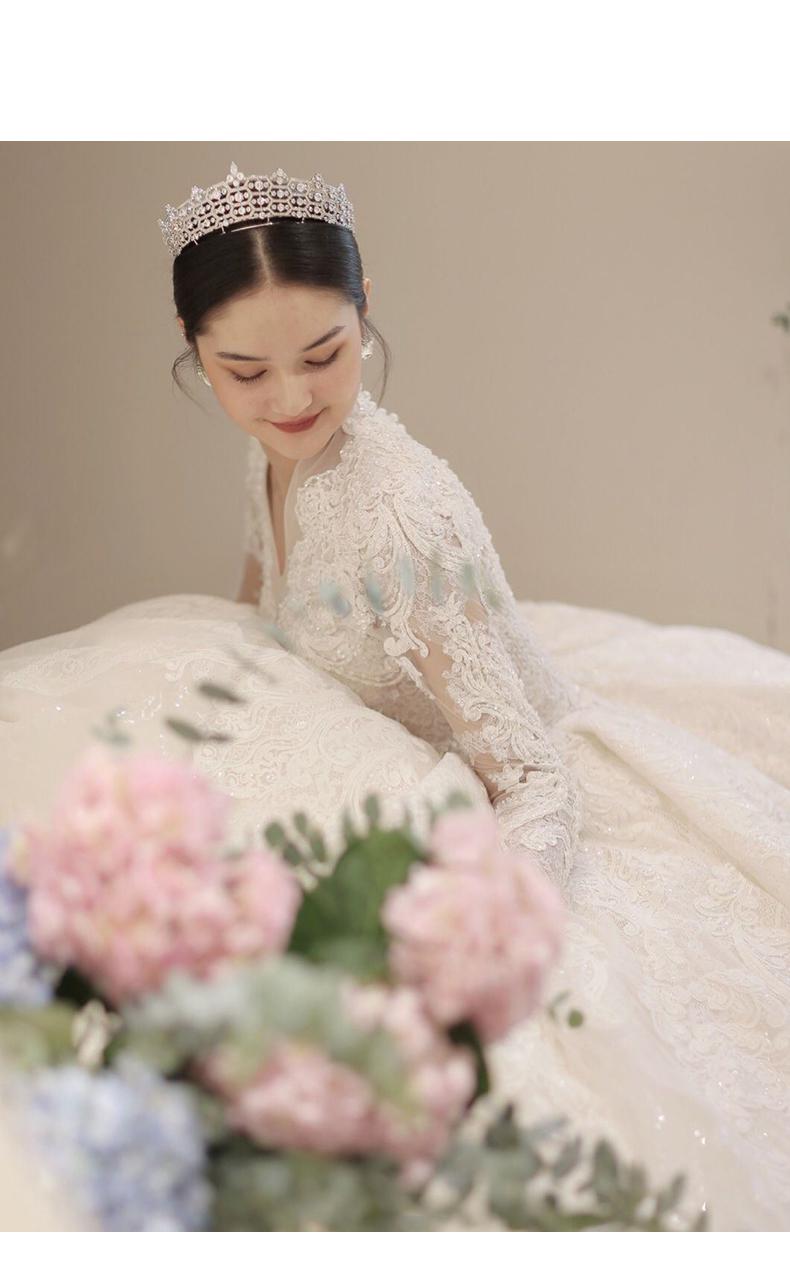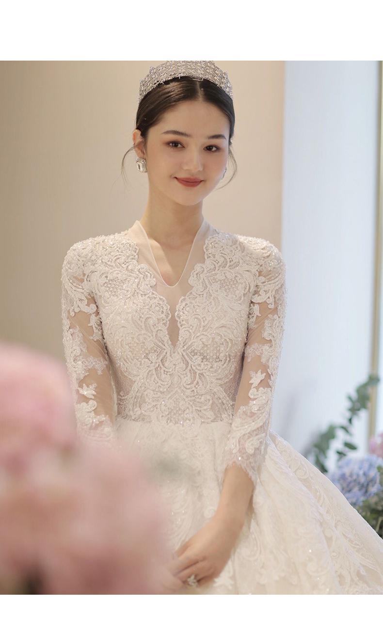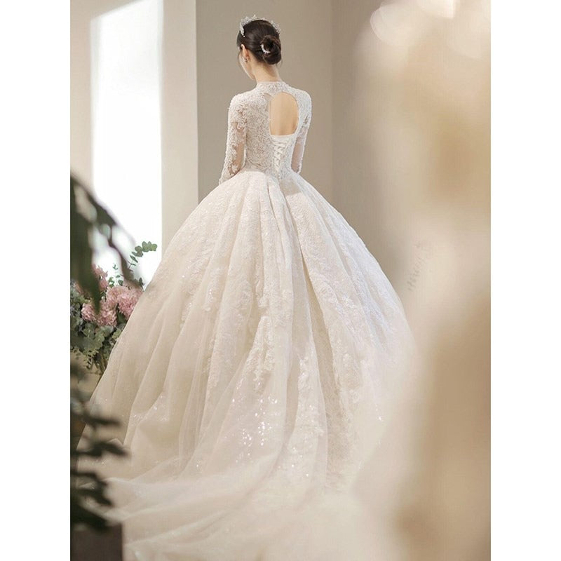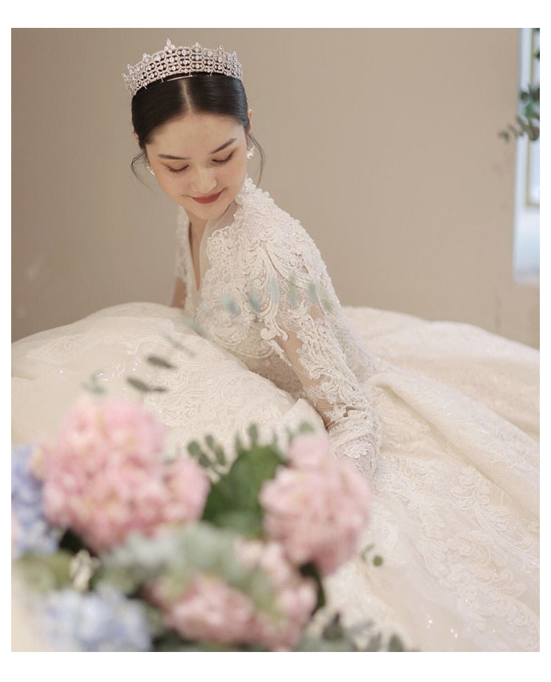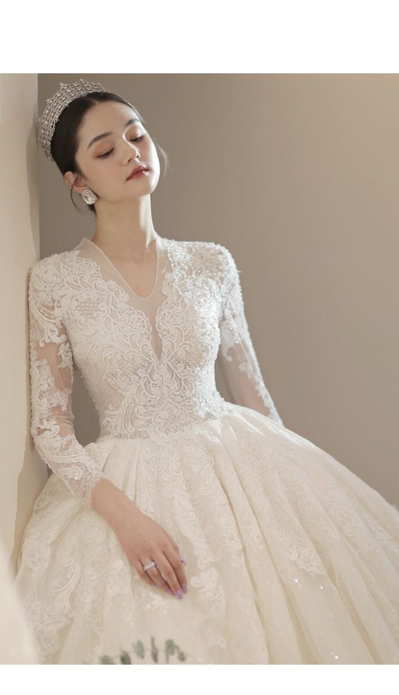 Long Sleeve New Winter V-neck Flower Ball Gown Dresse